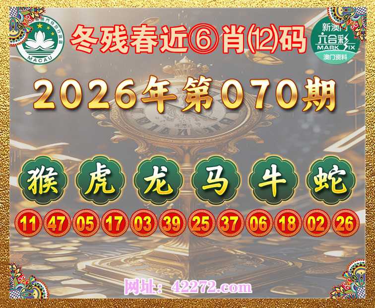 070期:〖冬残春近〗 ⑥肖⑿码【猴虎龙马牛蛇】开:马25准见证上榜